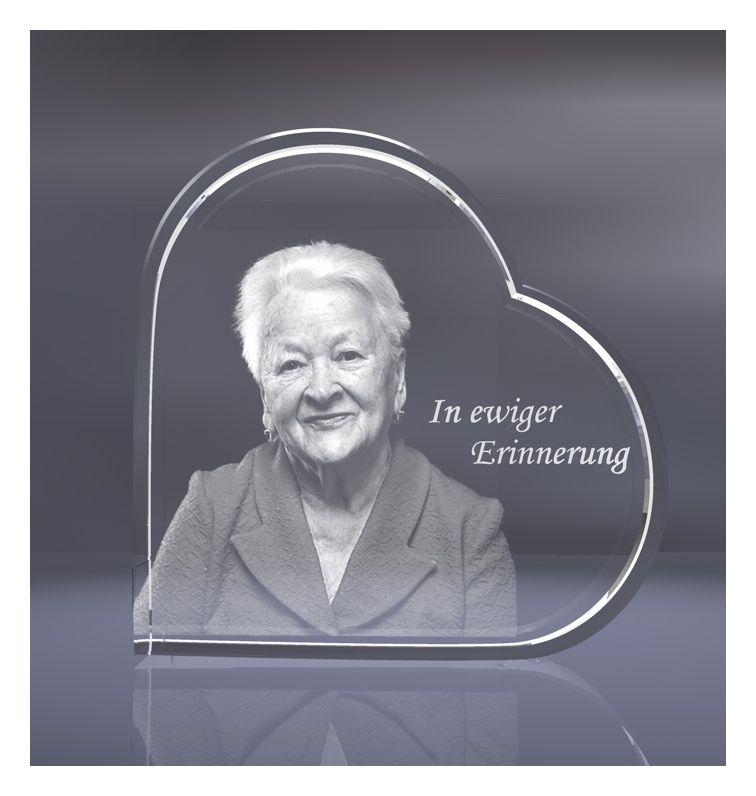 - Glaskristall in Herzform mit Ihrem Foto graviert in den Abmessungen 60 x 60 x 30 mm