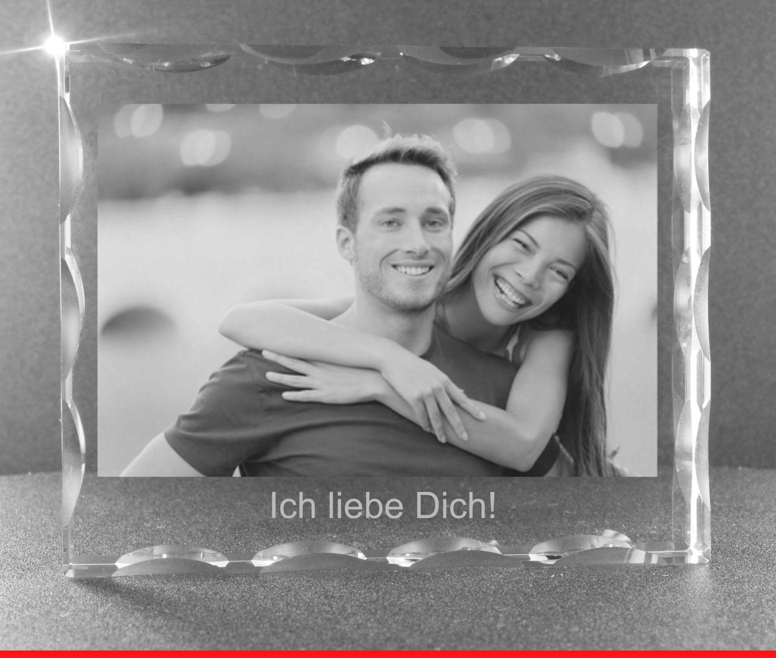 Sie erhalten einen Glaskristall der mittels einer 2D Laserinnengravur versehen ist. Eines Ihrer Wunschfotos wird direkt mitten IN das Glas eingraviert - die äußere Oberfläche bliebt komplett unbeschadet und glatt. Die Gravur ist geschützt und bleibt für die Ewigkeit bestehen, außer Sie erhitzen das Glas auf über 500 Grad oder lassen es fallen :-)