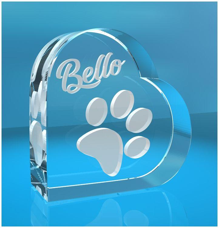 3D Glasherz I Hundepfote + Wunschtext