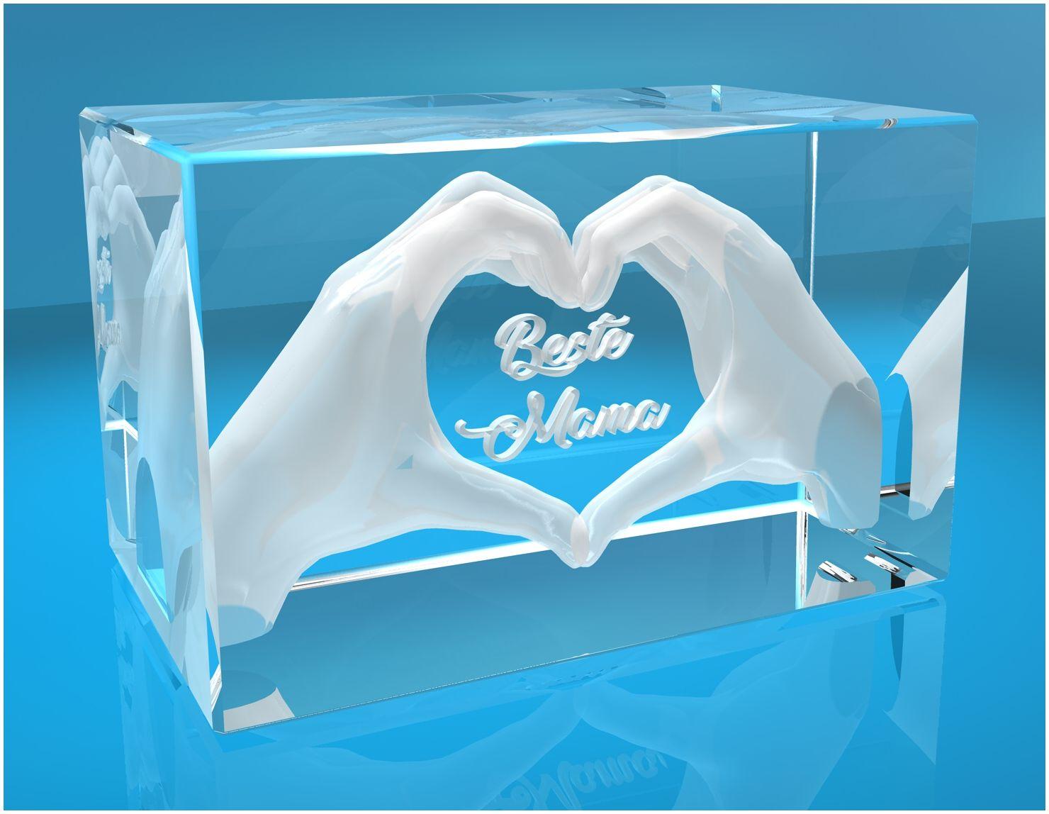 Produktinformationen "3D Glasquader I Herz aus Händen mit Gravur I Text: Beste Mama!"