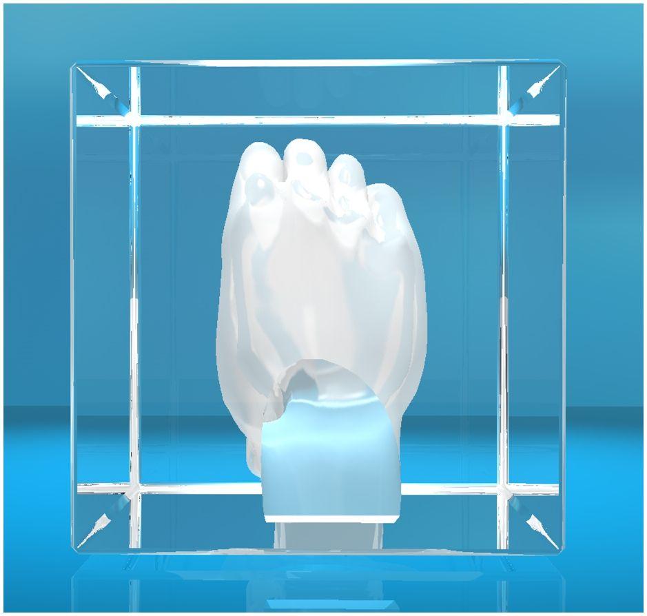 - 3D Glaskristall mit dem abgebildeten Motiv in den Abmessungen 80x50x50mm