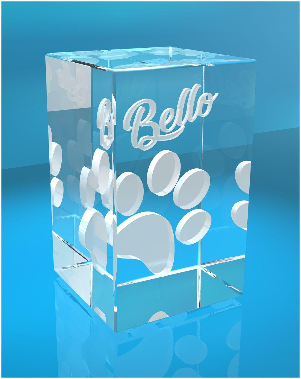 Produktinformationen "3D Glasquader I Hundepfote + Namen"