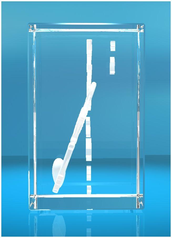 - 3D Glaskristall mit dem abgebildeten Motiv in den Abmessungen 80x50x50mm (Höhe x Breite x Tiefe)