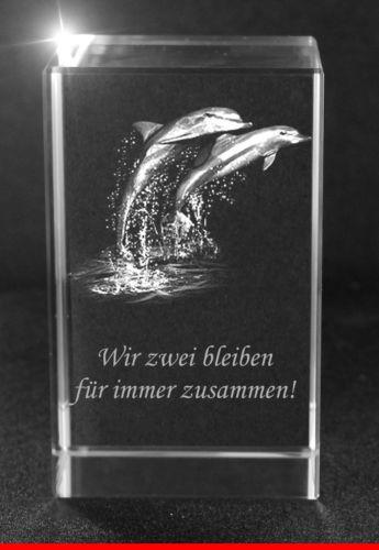 3D Glasquader I zwei Delfinen I Text: Wir zwei bleiben für immer zusammen