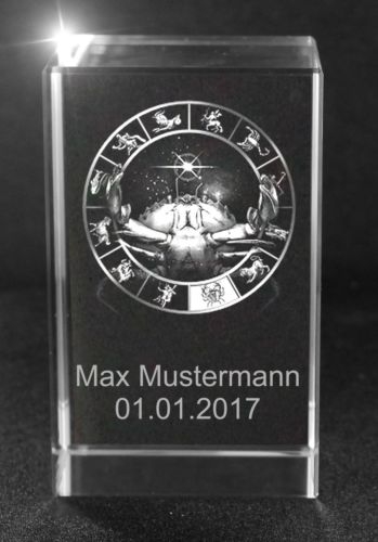 3D Glasquader Motiv: Sternzeichen Krebs + Wunschtext