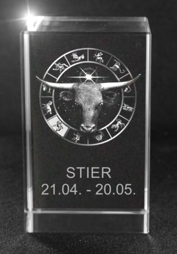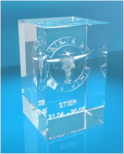 Produktinformationen "3D Glasquader Motiv: Sternzeichen Stier"