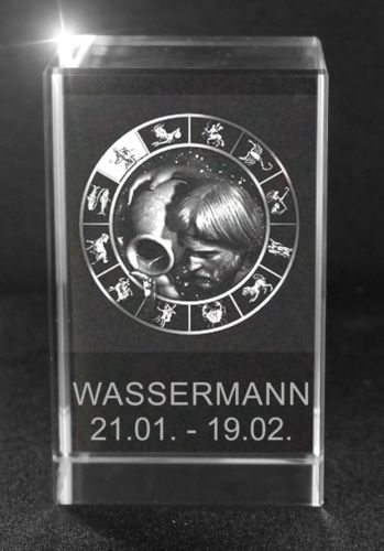 3D Glasquader Motiv: Sternzeichen Wassermann + Wunschtext