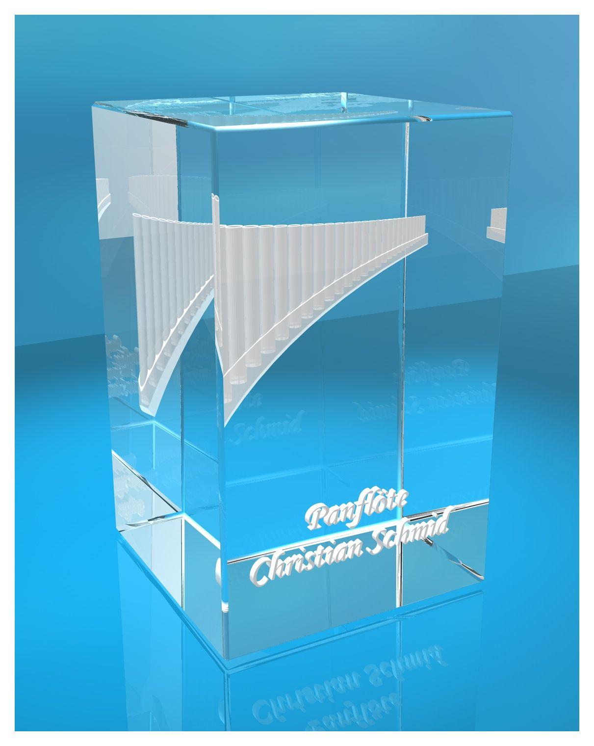Produktinformationen "3D Glasquader |Panflöte mit Wunschnamen |Blasinstrument |Geschenk für Panflötespieler Musiker Orchester"