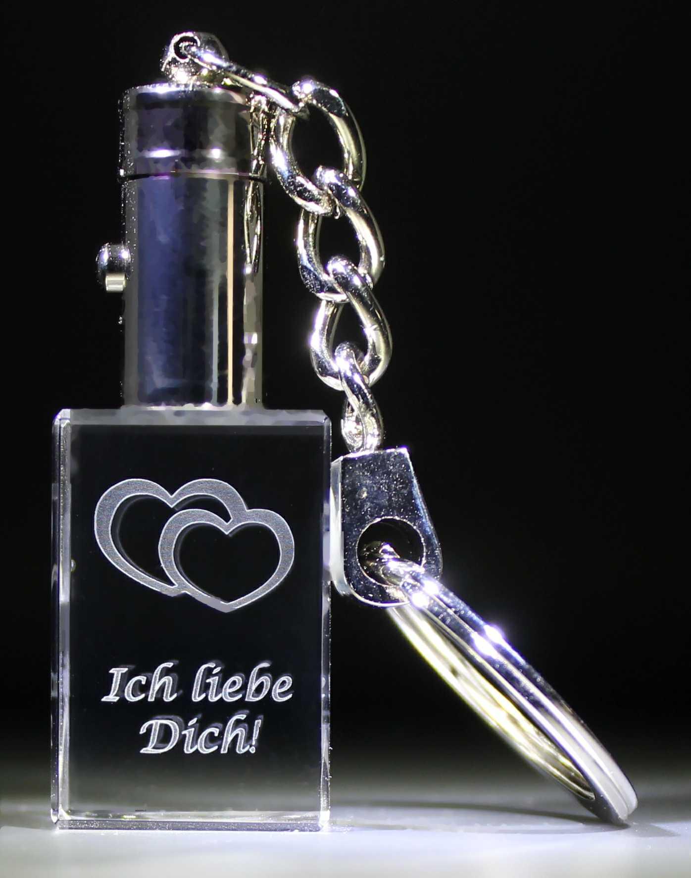Unsere Schlüsselanhänger enthalten eine LED-Beleuchtung welche das von uns in den Glaskristall gravierte Motiv beleuchtet. Somit ist dieser auch als kleine Schlüsselloch-Lampe in der Nacht zu benutzen.
