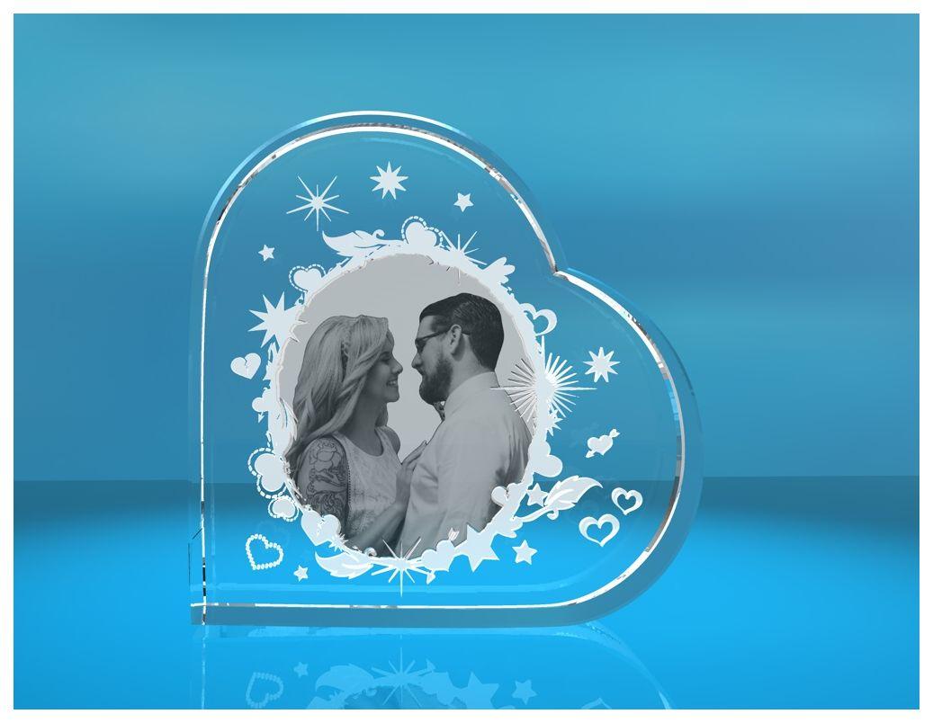 Das Herz hat eine Größe von ca. 80 x 80 x 19 mm und besteht aus hochwertigem, optisch reinem Kristallglas – ganz ohne Einschlüsse. Dein Wunschfoto wird im Inneren des Glases graviert – kein Druck, keine Farbe, nur reine Eleganz und Präzision.