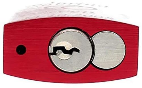 - Hochwertiges, massives Aluminium-Schloss in der Farbe Rot